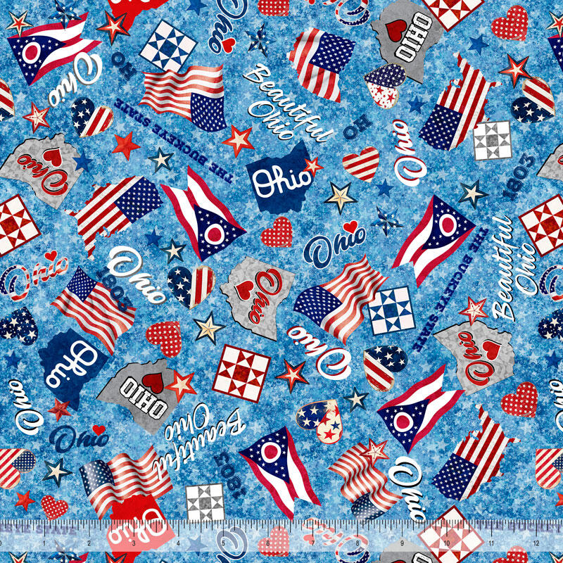 Blue Patriotic Toss fabric is from the All Ohio Shop Hop 2025 line.