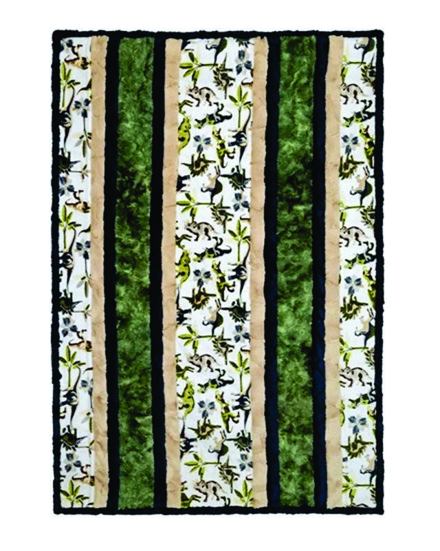 • You're going to be hearing a "Roar!" This prehistoric-themed Cuddle kit includes our Lost World Cuddle Sand print that is covered in dinosaur illustrations of all shapes and sizes - each fitting like puzzle pieces between nearby dinosaurs facing different directions. The kit also features Luxe Cuddle Galaxy Camo, Hide Safari, Hide Navy (binding) and Embossed Chevron Cuddle Navy, and when finished, you have a quilt that looks like it's straight out of the Jurassic period! This Fabulous 5 Cuddle kit is approximately 38" by 58" and includes a pattern, five pre-cut 10" strips and binding.