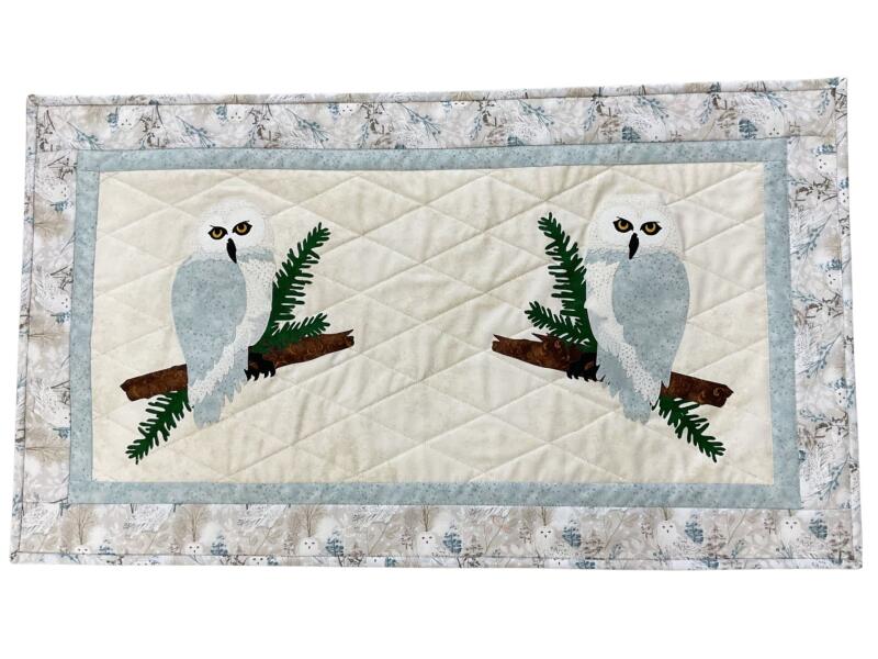 Winter's Snowy Owl Table Runner Kit comes with background borders & binding strips precut.
